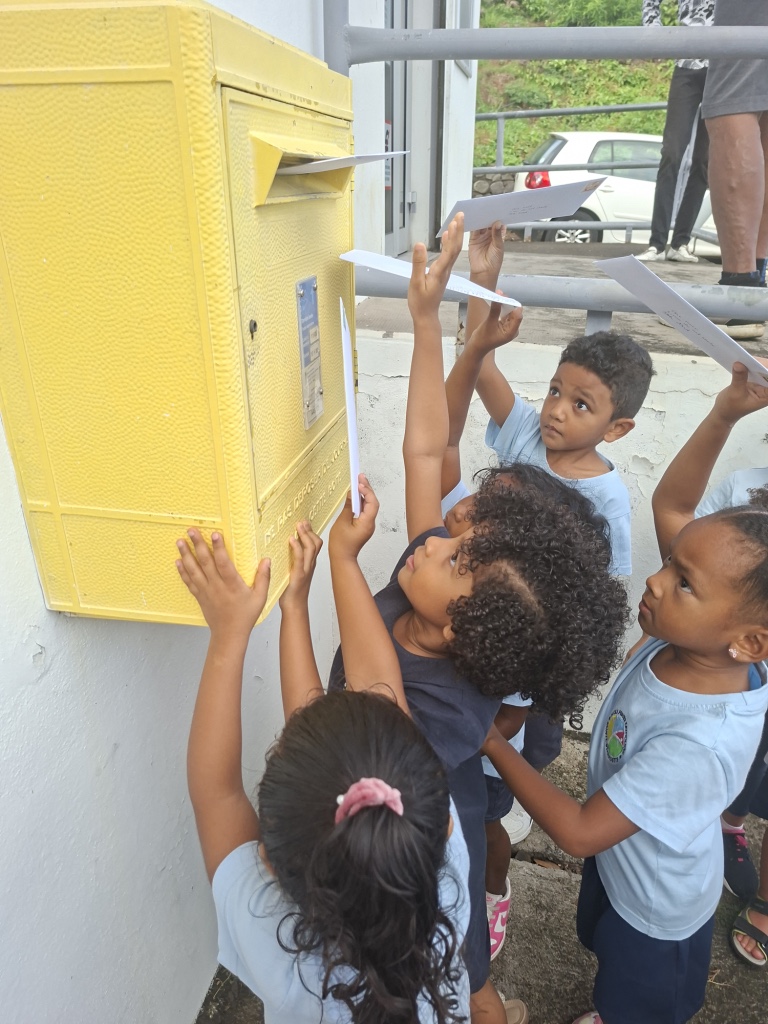 Chaque élève de moyenne section a écrit une jolie lettre au Père Noël. Tous ensemble ils sont ensuite partis à la poste pour la déposer avec beaucoup d’enthousiasme et de magie de Noël plein la tête.