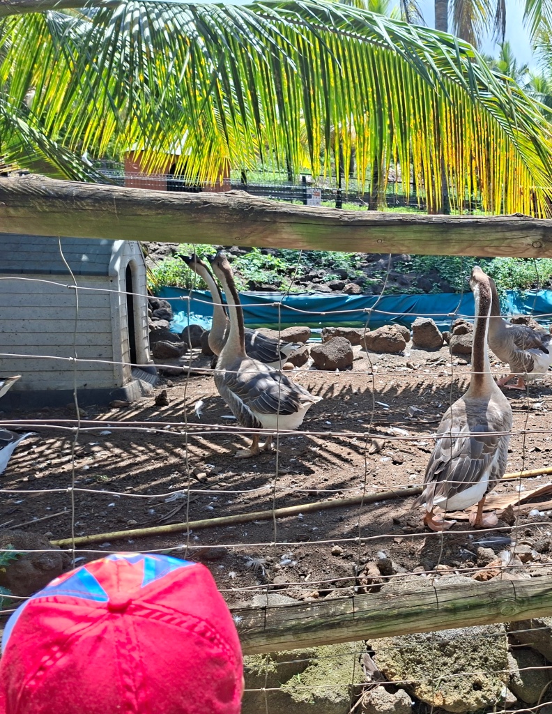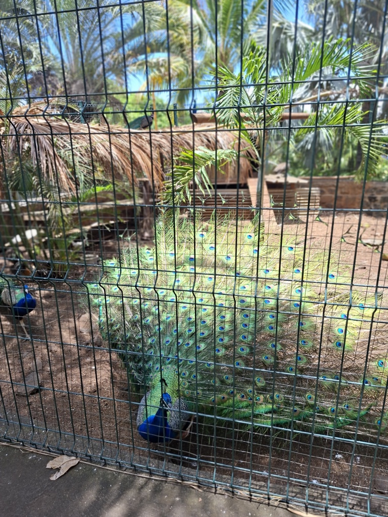 A notre arrivée, nous avons été accueillis par une animatrice qui nous a fait visiter ce jardin paysager tropical de 2.5 hectares qui regroupe plusieurs centaines d’espèces végétales ( Eucalyptus, Bambous, Nénuphars, Jacinthes d’eau, Baobab, Palmiers, Lataniers rouges, Frangipaniers, Benjoins, Calebassiers, Badamiers…) et animales ( poules d’eau , caméléons, abeilles…)